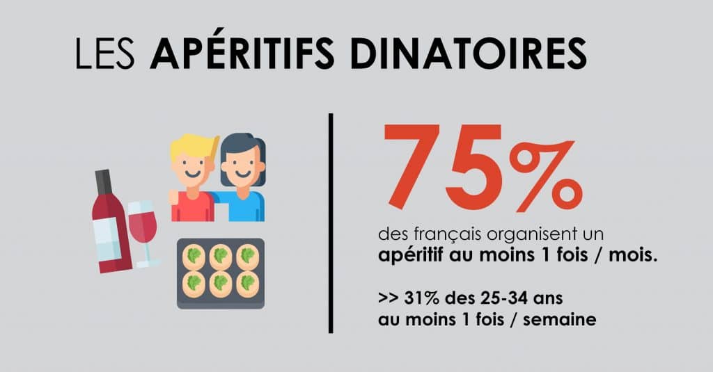 Aujourd’hui, l’apéritif n’est plus seulement considéré comme ce moment qui précède un repas pour se mettre en appétit, il se transforme en un repas à part entière qui séduit de plus en plus de Français par son côté informel et festif. L’apéritif devient même un événement récurrent, voire mensuel, pour 75 % des Français.